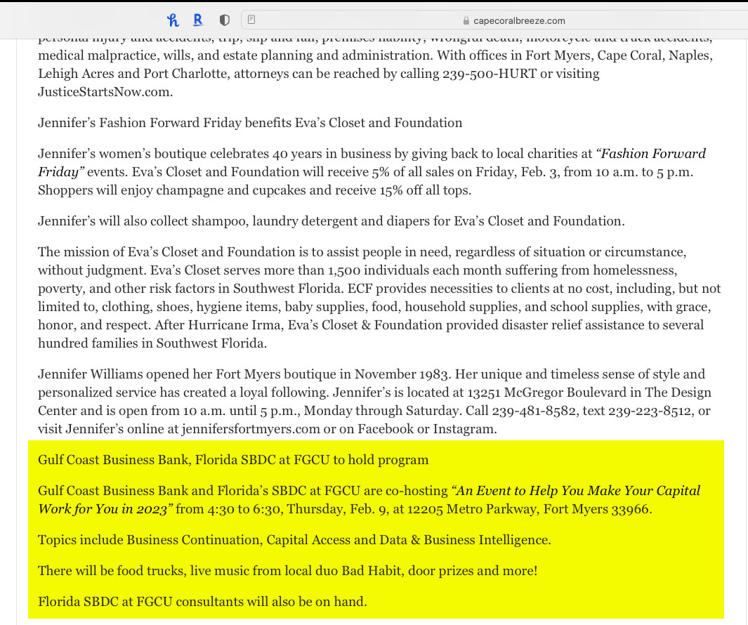 - Gulf Coast Business Bank is Southwest Florida's First New Community Bank in 12 Years